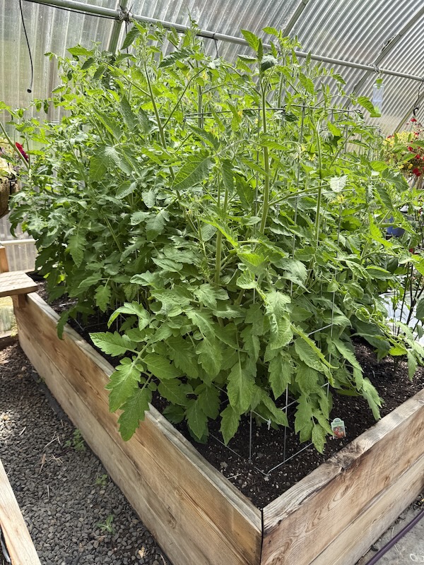 These determinate tomatoes got 6 feet tall even before they started setting fruit. Things can get big and tall in a greenhouse. Plan accordingly.