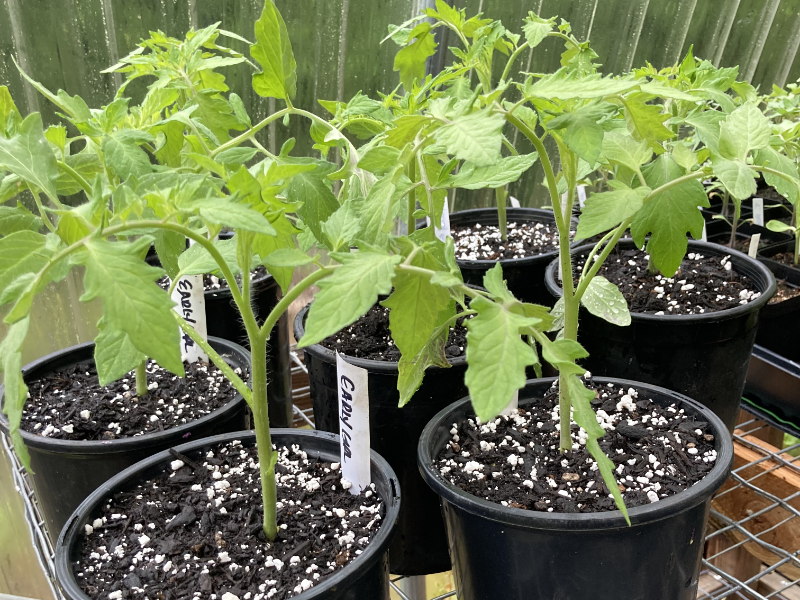 Here are some samples of plants growing in Larry King's hoop-house style greenhouse (photos courtesy of Larry King). Featured image of tomato starts, also by Larry King.